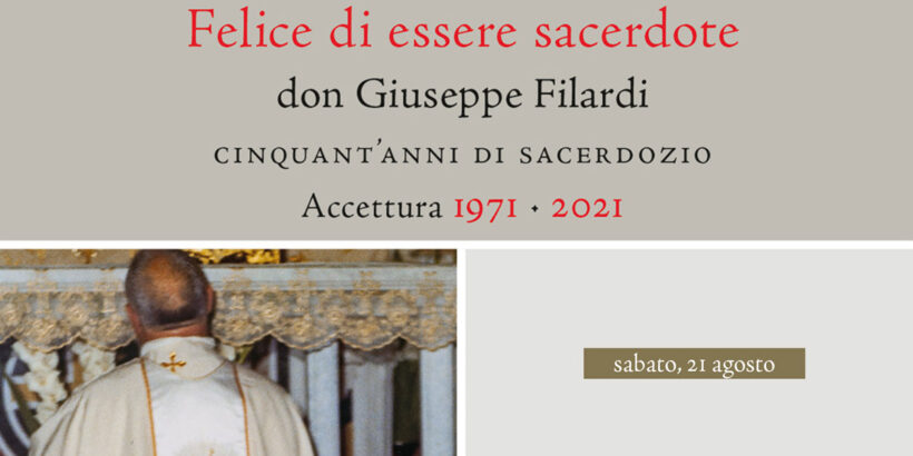 Don Giuseppe Filardi, parroco di Accettura, festeggerà sabato 21 agosto cinquant’anni di sacerdozio assieme ai presbiteri, agli amici e alle comunità di Campomaggiore e di Accettura, luoghi toccati dalla sua azione pastorale. Il programma prevede una Concelebrazione Eucaristica in largo San Vito alle ore 18,30 presieduta da Sua Eccellenza Giovanni Intini, vescovo di Tricarico.
