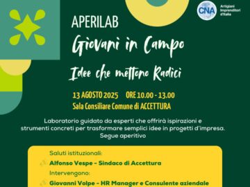 Leggi tuttoAPERILAB | Giovani in campo, idee che mettono radici Il 13 agosto ore 10:00 ad Accettura, nella Sala Consiliare del Comune, arriva “APERILAB | Giovani in campo, idee che […]