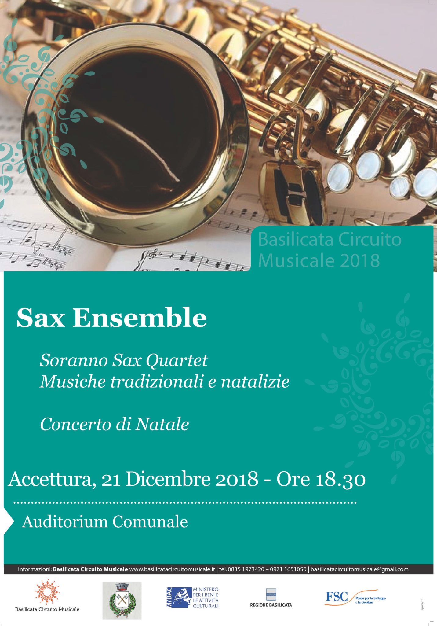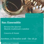 ore 18.30 > Auditorium Comunale – Sax Ensemble Soranno Sax Quartet. Musiche tradizionali e natalizie