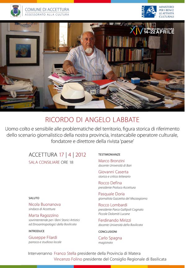Accettura ricorda la figura e l’impegno di Angelo Labbate (Vincenzo de Lillo, Gazzetta del M. 17.4.12)