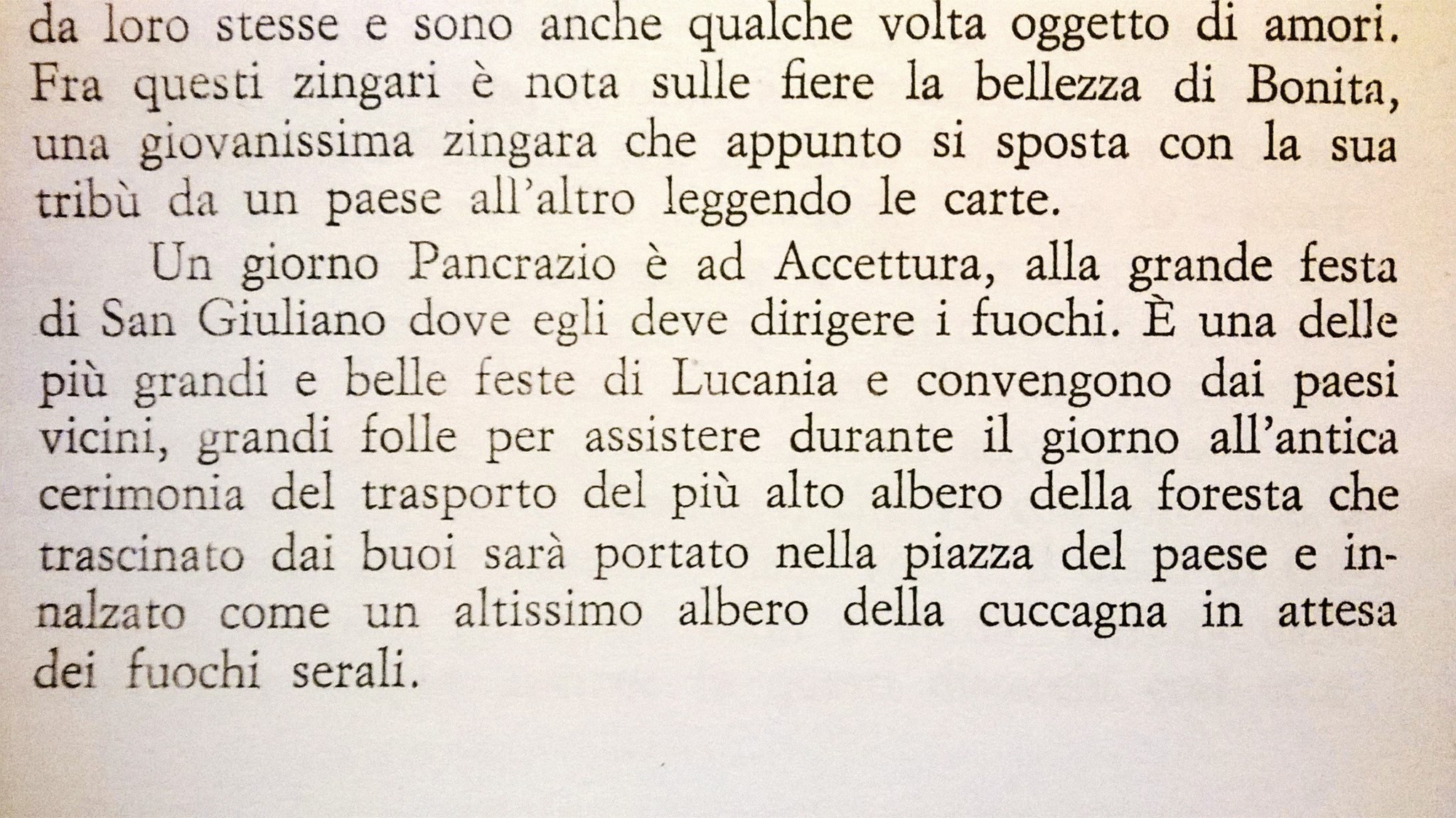 Lo spettacolo narra le vicende di un pirotecnico di Tricarico e la sua bellissima storia d’amore avvenuta durante la festa del Maggio ad Accettura